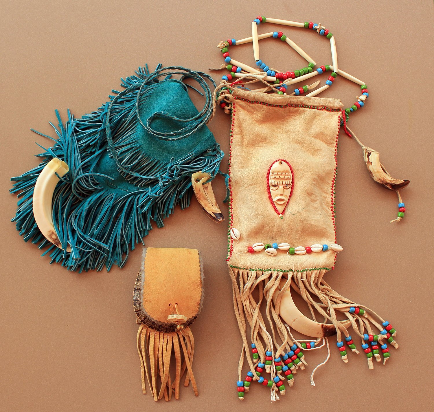 Traditionnellement, les Femmes et Hommes Médecine, les « chamans » amérindiens, portent un Sac Médecine, autour du coup ou accroché à leur vêtement.