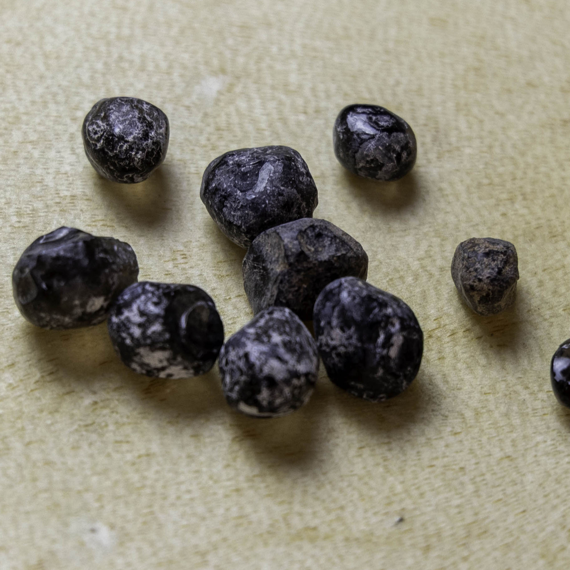 Ces larmes d’Apache proviennent directement du Sud de l’Arizona d’où je les ai ramenées moi-même.Il s’agit d’une variété d’Obsidienne, caractérisée par son aspect translucide, lorsqu’on la place à la lumière.