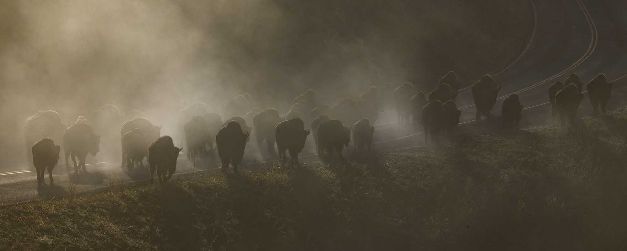 "Bisons dans un Souffle" - Yellowstone, lors du voyage de Corine Mystery, en avril 2024.